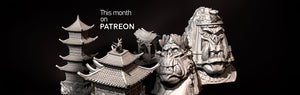 Jagged Ork idols loom over the field, covered in crude scrap and glyphs. Spiky walls trap enemies, while platforms give brutal firing lines—perfect for Orktober mayhem.
